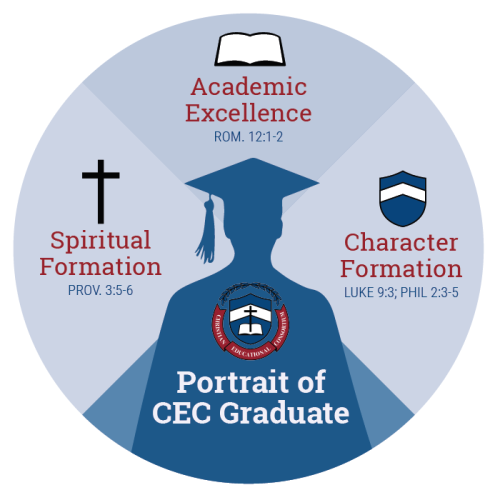 CEC graduates develop Christ-like character; engage with culture purposely, confidently, and responsibility; lead by example with a servant’s heart; and foster a culture of encouragement, integrity, compassion, discipline, respect, and joy.